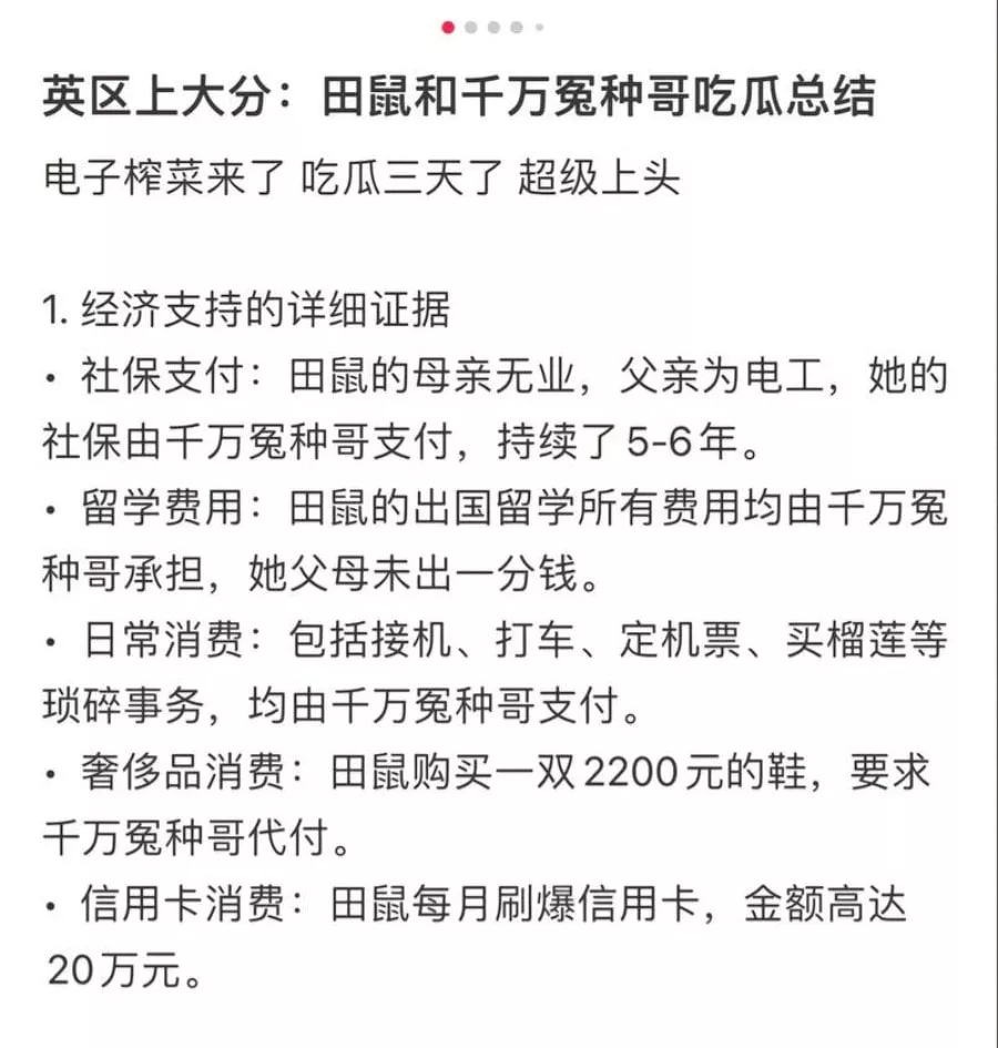 在抖音上拥有21万粉丝的女网红田叔特工,自我塑造的形象是一位在英国留学的富家千金。然而,事实上,她所有的财富都来自于男友。在与男友长达六年的恋爱关系中,她花费了高达1300万元。更令人震惊的是,男友发现这位伪装的千金在私下里与数十名男性发生不正当关系,并拍摄了大量不雅视频。愤怒之下的男友决定将她告上法庭,以维护自己的权益。