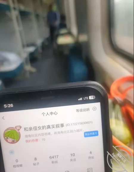 回来的火车上拍的,发给侄女看,没想到侄女还吃醋了。昨天晚上和侄女聊天,侄女说怎么半天不回她信息,刚给你婶子在办事,侄女发语音跟我说很不开心,小女孩的心思不知道天天在想啥。