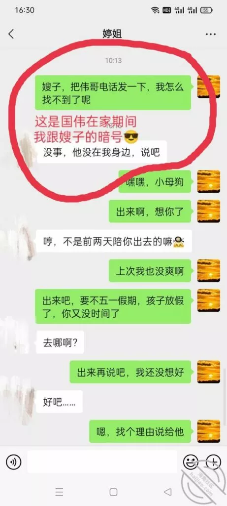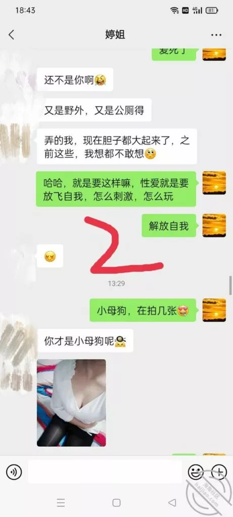 嫂子这个小母狗,真的是越来越大胆了,趁着国伟出去的时候居然与我调情,真的是搔啊,估计也是国伟回来,在床上没满足她,心里肯定不爽从聊天记录嫂子的语气中,不难看出,现在估计国伟在她心里,有没有都行了,在我这除了抱怨国伟,几乎就不说别的什么,估计在家里,跟国伟说的话,还不如跟我说的多呢,也是,谁让国伟满足不了自己的老婆呢,尤其是跟嫂子玩完SM,公厕,还有楼梯间后,现在我不光是拿下了嫂子的身体,也是征服了嫂子的心,这个小母狗其实内心就有一颗狂野的心,希望被人驯服,只是国伟没有开发出来!既然国伟没开发出来,只能是我来开发了,哈哈哈