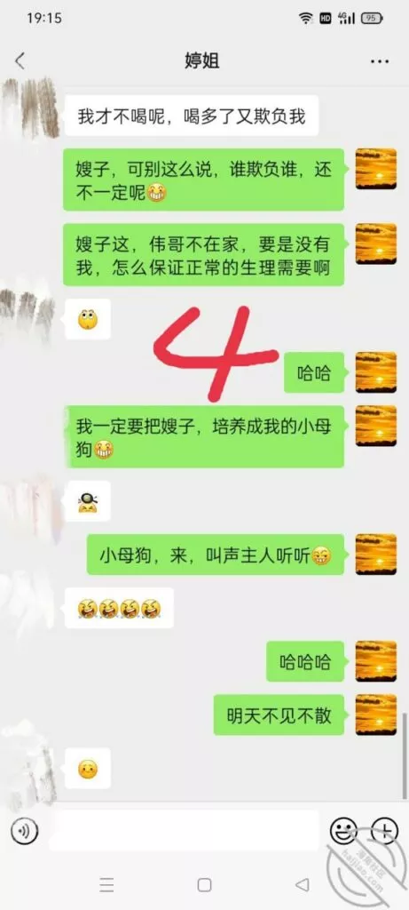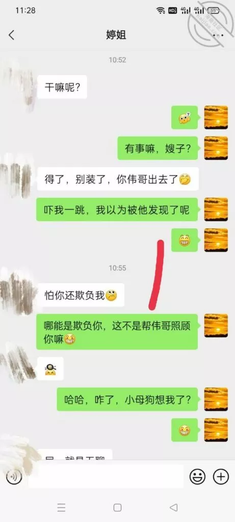 要我说我现在得反思一下了,我不能太着急。要沉得住气,女人就是这样,你进她就退,你退她就进的jb玩意儿,说白了就是贱。所以我这次的聊天以退为进,以守为攻。这次的聊天主要是为了套出来她的一些个人情报,然后在让聊天进一步深入。就看第四页和第五页的内容,她跟我滔滔不绝的吐露心声,就说明这个b日常绝对很寂寞很孤独,跟国伟的关系也就是表面上,那话咋说的,中年夫妻亲一口恶心大半宿。所以我觉得我还是有可乘之机的。而且看得出来她跟婆婆的关系也不好,国伟不在家,估计跟婆婆也没有过多交集。这种女人啊内心最饥渴了,渴望得到男人的关注。所以我就是那个关注关怀他的男人。要让她习惯我们的亲密关系,所以我故意提出要跟她做闺蜜。虽然她看起来很不情愿,但我觉得她心理肯定乐开了花。我试图叫她出去喝酒,结果她不去,不过她肯定不去,她那么能装清高,肯定不能那么容易就答应啊。这很正常,这个b开始欲擒故纵了。就直接不回我最后一条消息,这个b故意让我等了一个下午,这就是欲擒故纵。女人开始跟你欲擒故纵就说明她想得到你,但是又不好意思自己主动,所以就想让你主动,这就是清高b的惯用手段。也就是说,我很快就能得到这个b女人。