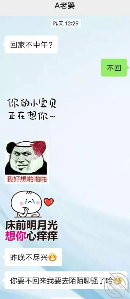 可是我也没想到会这么的反差,这几天聊了好多好多接近上千条的聊天记录,基本上一有空,我不管在外面还是在家里头都完美的扮演一个知心和知性的成熟男人形象在跟大姨子聊天,而且还刻意去附和她的每一个消息,结果显著,大姨子很快就跟我成了‘无话不谈’的‘网络知音’….