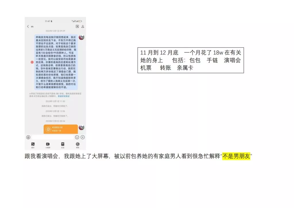 苦主在ppt后半段附上了所有的制服记录,接近100个w的钱财,买不到一个渣女的心,二代哥从此不再相信爱情