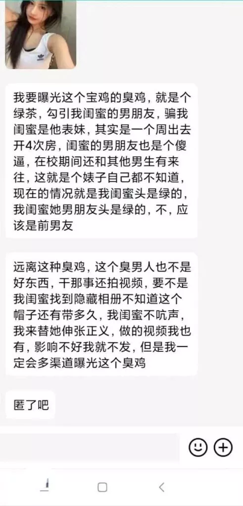 防火防盗防闺蜜,四川师范大学经济与管理系在校生石敏佳,吸引自己闺蜜的男友,在校多次pua男生花钱,在外做缘交外围。被闺蜜发现后果断曝光