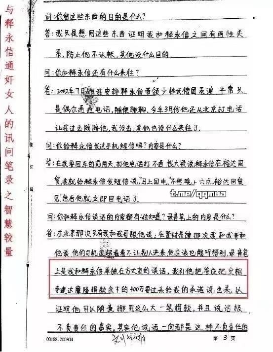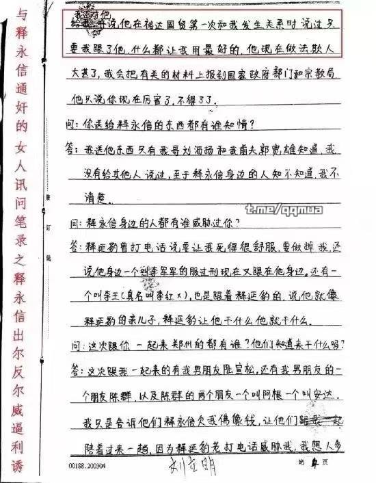 释永信对于自己犯下的罪行供认的笔录