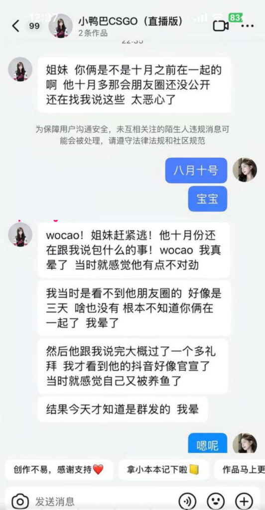 电竞圈再度传来噩耗,现任CSGO职业选手张斯柯z4kr,被女友曝光大量限制级内容,指责其在交往期间多次出轨劈腿女粉,脚踏多只船不说,甚至拿着女友的钱包养小三,更是和某福利姬搞到一起。