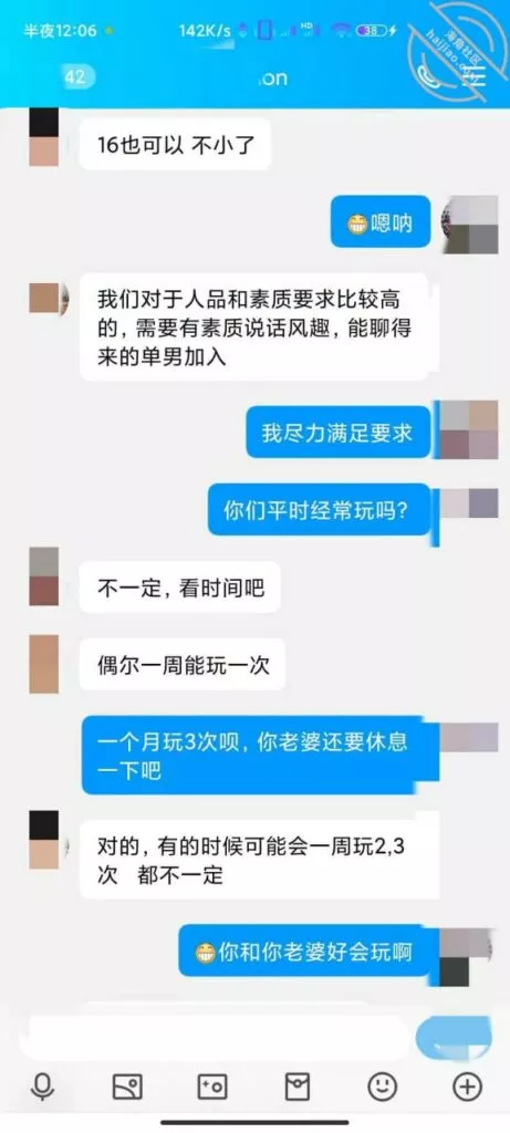 上次发帖,根据兄弟的提示成功加上好友,但是没经验不知道怎么说,有个兄弟私聊说自己做过单男,教了我开场白,说我是本地的一个单男,介绍自己的身高体重发照片,表示一些尊重,但是我发的照片是我朋友的照片,他们没见过 哈哈哈。看说话的语气估计是妹夫,妹夫说他们入圈三年了,应该是19年就已经在玩这个了,那时候小外甥才出生,应该是生完小外甥之后玩的,之后妹妹也打过两次胎,不会是被别人弄大了肚子吧。妹夫承认了他有绿帽癖好,妹妹也喜欢被人Cao,看来妹妹这些年真的没少经历,前几天回家呆了两天,换下来一条内裤 ,