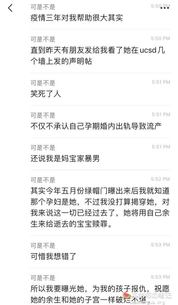 超级大瓜,加州大学女博士婚内出轨情夫,在已怀孕34周的情况下还要与情夫距离运动,导致羊水破裂胎儿流产,为了给自己洗白编造谎言,前夫一怒之下把所有事实摆出