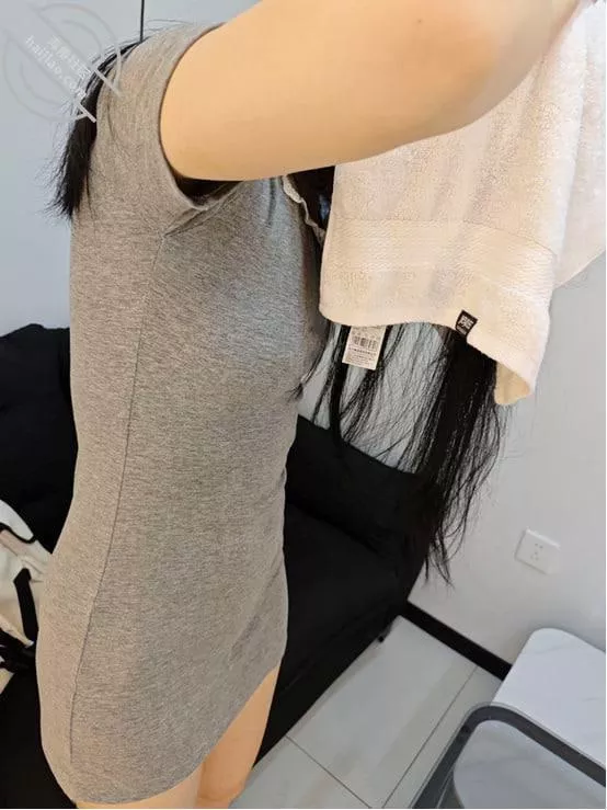 我看了看女儿我就说你先把头发吹干啊,不然一会头发湿的把衣服都弄湿了,女儿想想也是。就去吹头发了,我就放下筷子,打开手机对着女儿开始拍摄。