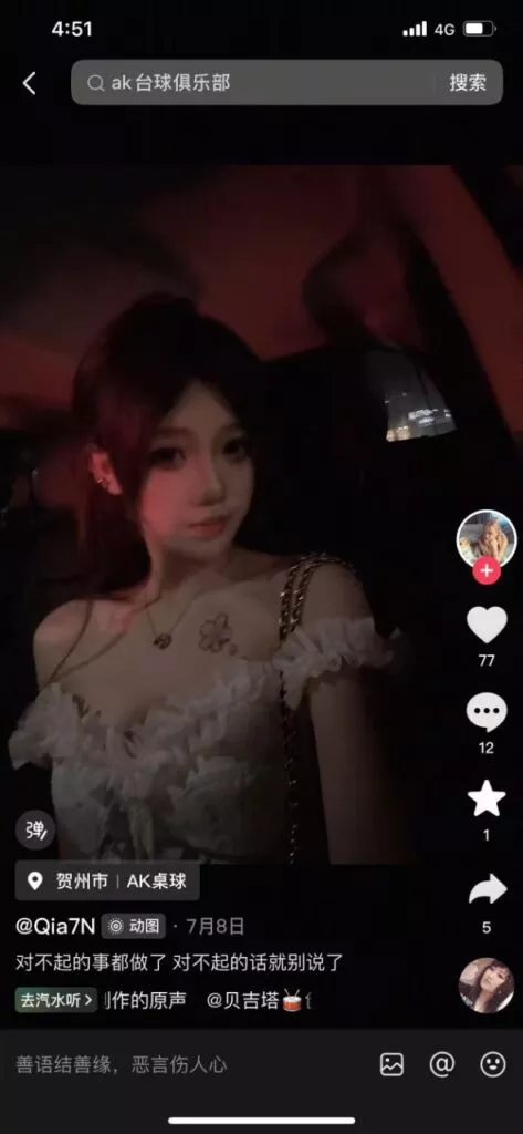 在广西壮族自治区贺州市钟山县的云端台球室,一名美女助教明知顾客已有家庭和孩子,依然不顾廉耻地与其保持亲昵甚至陪睡。随后,这一行为被正室发现,并迅速曝光。
