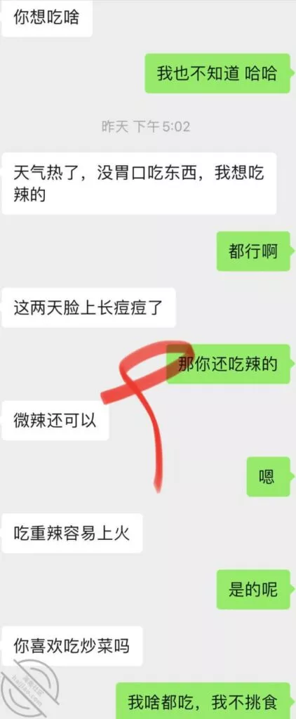 因为之前聊天有提到过我家里养了几只乌龟,就这样半推半就的被我拉着就回我家了。到家了就正常喝了点啤酒,可能时间有点晚了,她就说要回去,那我自然是不能放过的,正常的一系列Cao作,刚开始以为她是那种半推半就,没想到反抗的特别激烈,把她压在床上,连亲她都是那种紧闭牙关,我这个人,只要遇到那种比较强烈的反抗,就没想法了,甚至都硬不起来那种,而且这个女的如果他真是不想让你Cao,也很难进的去,真不知道那些QJ案都是怎么发生的,我是真的理解不了,我看当时肯定是没戏了,也就送她回去了。PS:通过中间的聊天,了解到她虽然结婚了,但是是一个人在这个城市,就在我们小区附近工作,年龄比我大2岁,最有味道的那个少妇的年纪,在聊天的过程中,知道他住的地方是几个人一起合租,不能做饭那种,我就表示我不爱吃外卖,平时都是自己做饭吃,离得也近,以后邀请他一起吃,同时也是为了下次直接约到家里见面做铺垫。不知道是酒的原因还是我有点激动上头,居然忘记拍照,手机里一个照片都没有拍,所以就发几张聊天记录给大家看看吧。
